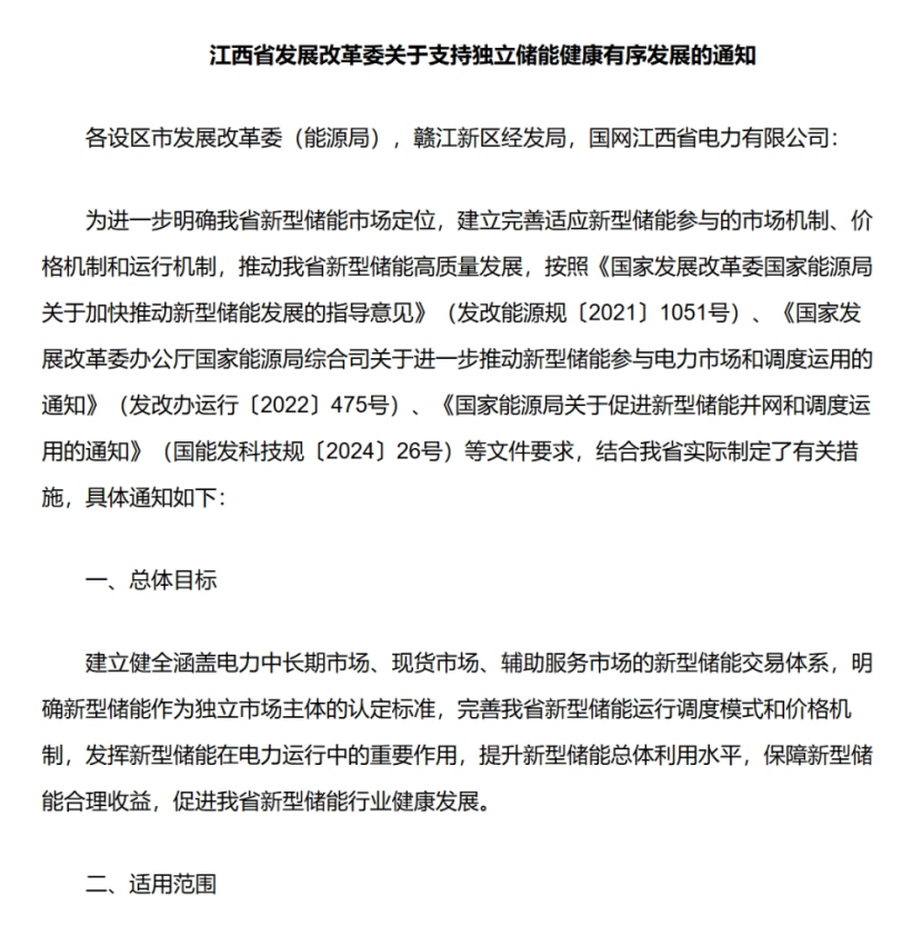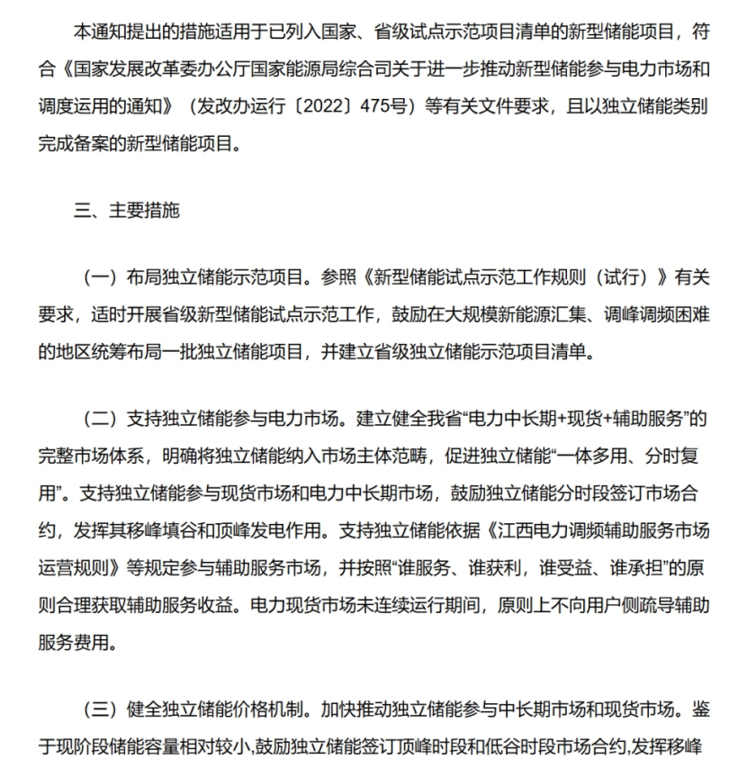 中國儲能網(wǎng)訊:江西省發(fā)改委4月16日印發(fā)的《關于支持獨立儲能健康有序發(fā)展的通知》,在全國率先構建起"電力中長期+現(xiàn)貨+輔助服務"三位一體市場體系,為獨立儲能參與電力市場開辟了全新路徑。
