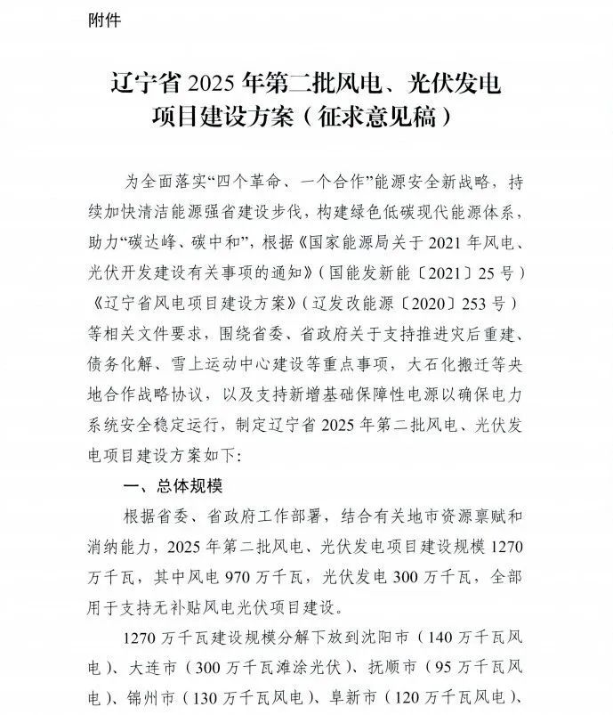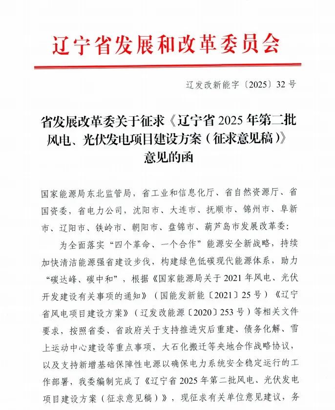 中國儲能網(wǎng)訊:近日,遼寧省發(fā)改委公布《遼寧省2025年第二批風(fēng)電、光伏發(fā)電項(xiàng)目建設(shè)方案(征求意見稿)》。