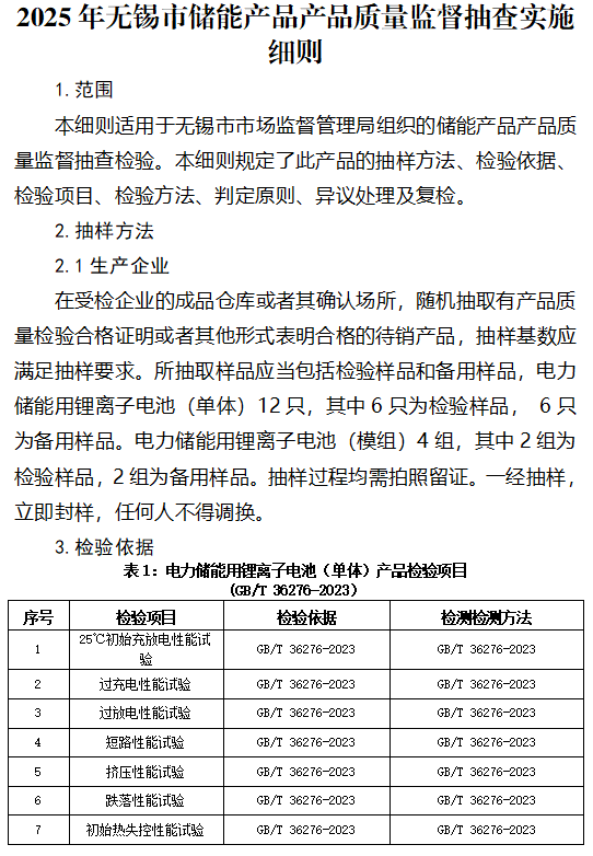 中國儲(chǔ)能網(wǎng)訊:4月21日,江蘇無錫市市場(chǎng)監(jiān)督管理局發(fā)布《2025年無錫市儲(chǔ)能產(chǎn)品產(chǎn)品質(zhì)量監(jiān)督抽查實(shí)施細(xì)則》。