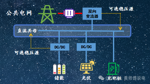 光伏逆變器和儲能雙向變流器就是最為關(guān)鍵的電力電子設(shè)備,它們一頭是交流,與網(wǎng)荷共母線,另一頭是直流,分別連接自家的直流電池。