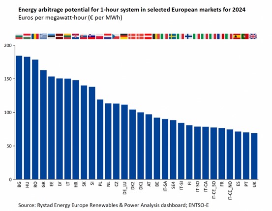中國儲能網(wǎng)訊:隨著可再生能源的快速擴(kuò)張疊加傳統(tǒng)火電、核電等不靈活電源,歐洲各國負(fù)電價現(xiàn)象頻發(fā)。2024年保加利亞電池儲能套利機(jī)會(按每MWh計算)位居歐洲首位,儲能成為新能源開發(fā)商競相布局的新寵。