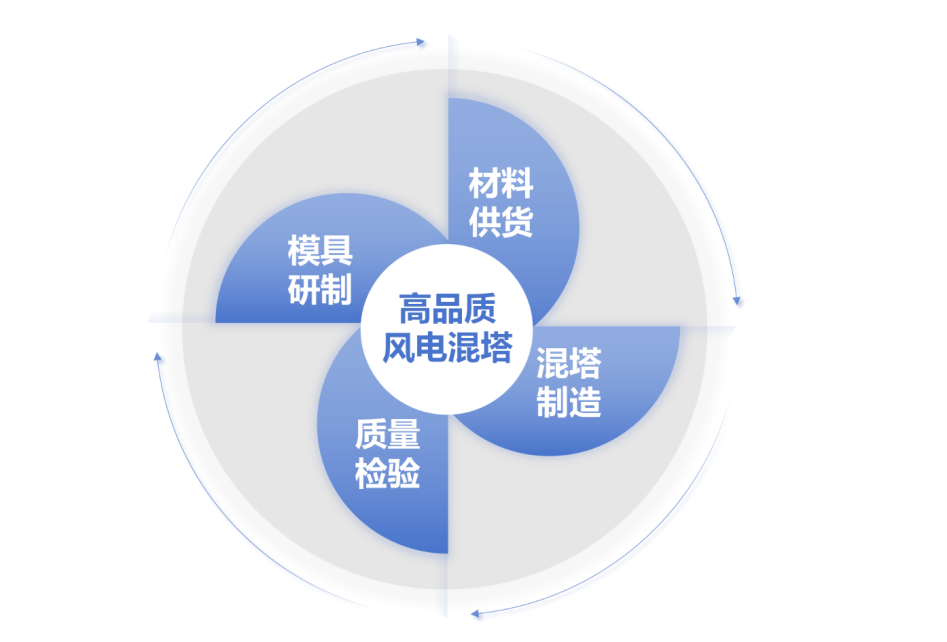 集團內(nèi)部全鏈條資源高效協(xié)同生產(chǎn)高品質(zhì)風(fēng)電混塔