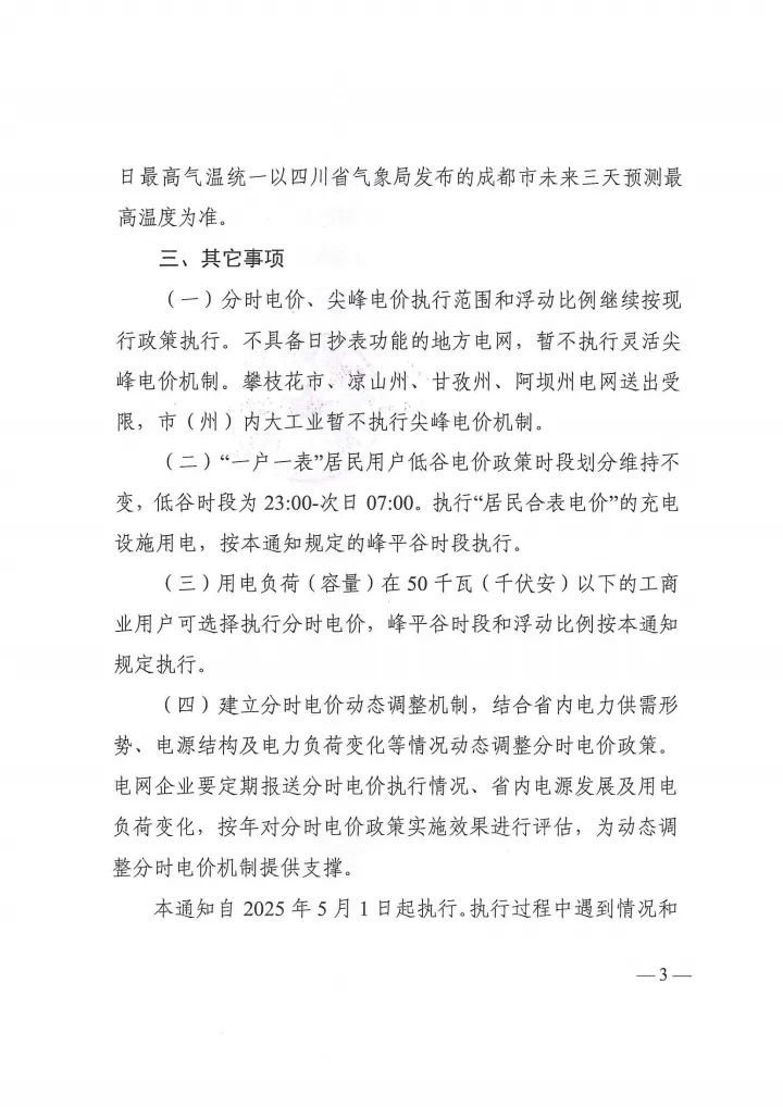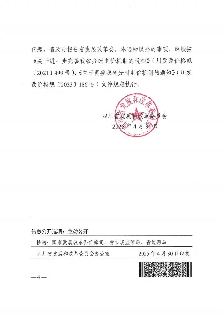 中國儲能網(wǎng)訊:4月30日,四川省發(fā)改委員正式發(fā)布《關(guān)于進一步調(diào)整我省分時電價機制的通知》(川發(fā)改價格〔2025〕185號),自2025年5月1日起執(zhí)行。