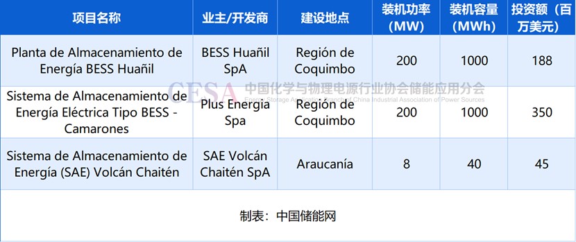 表 2025年3月智利環(huán)評獲批的鋰電池儲能項目