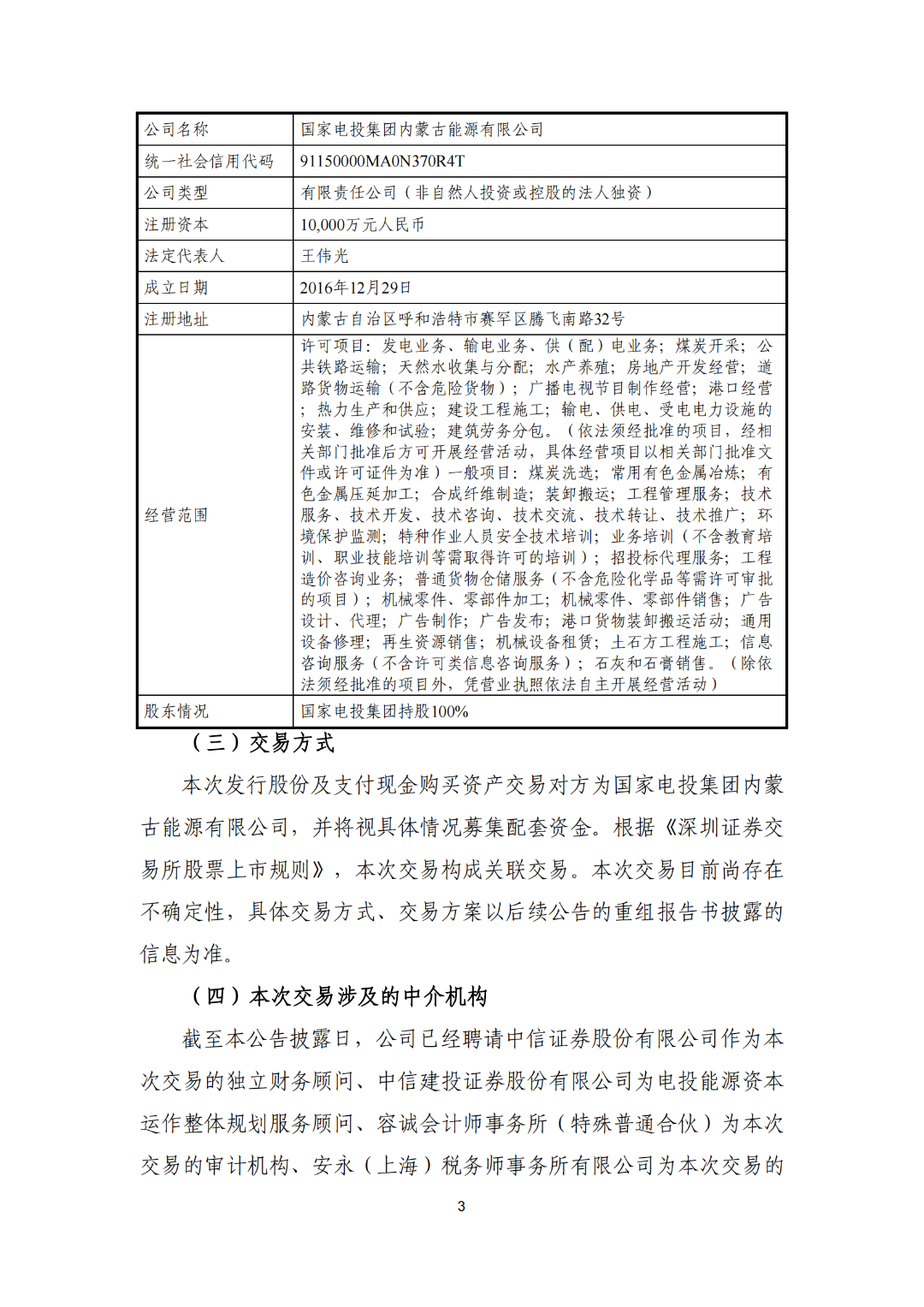 中國儲(chǔ)能網(wǎng)訊:5月5日晚間,國家電投旗下電投能源發(fā)布《關(guān)于籌劃發(fā)行股份及支付現(xiàn)金購買資產(chǎn)并募集配套資金暨關(guān)聯(lián)交易事項(xiàng)的停牌公告》,公告稱,國家電投擬以國家電投集團(tuán)內(nèi)蒙古白音華煤電有限公司股權(quán)與電投能源進(jìn)行資產(chǎn)重組。