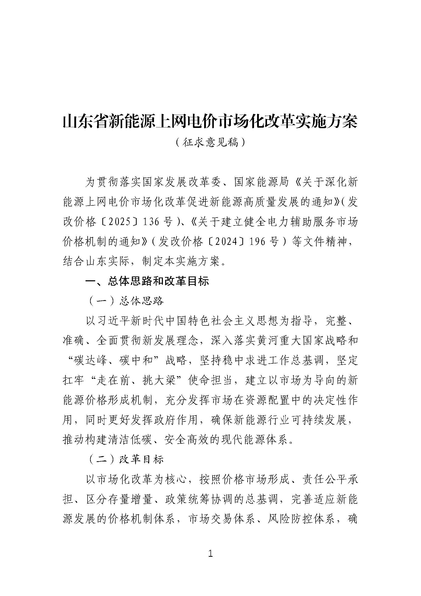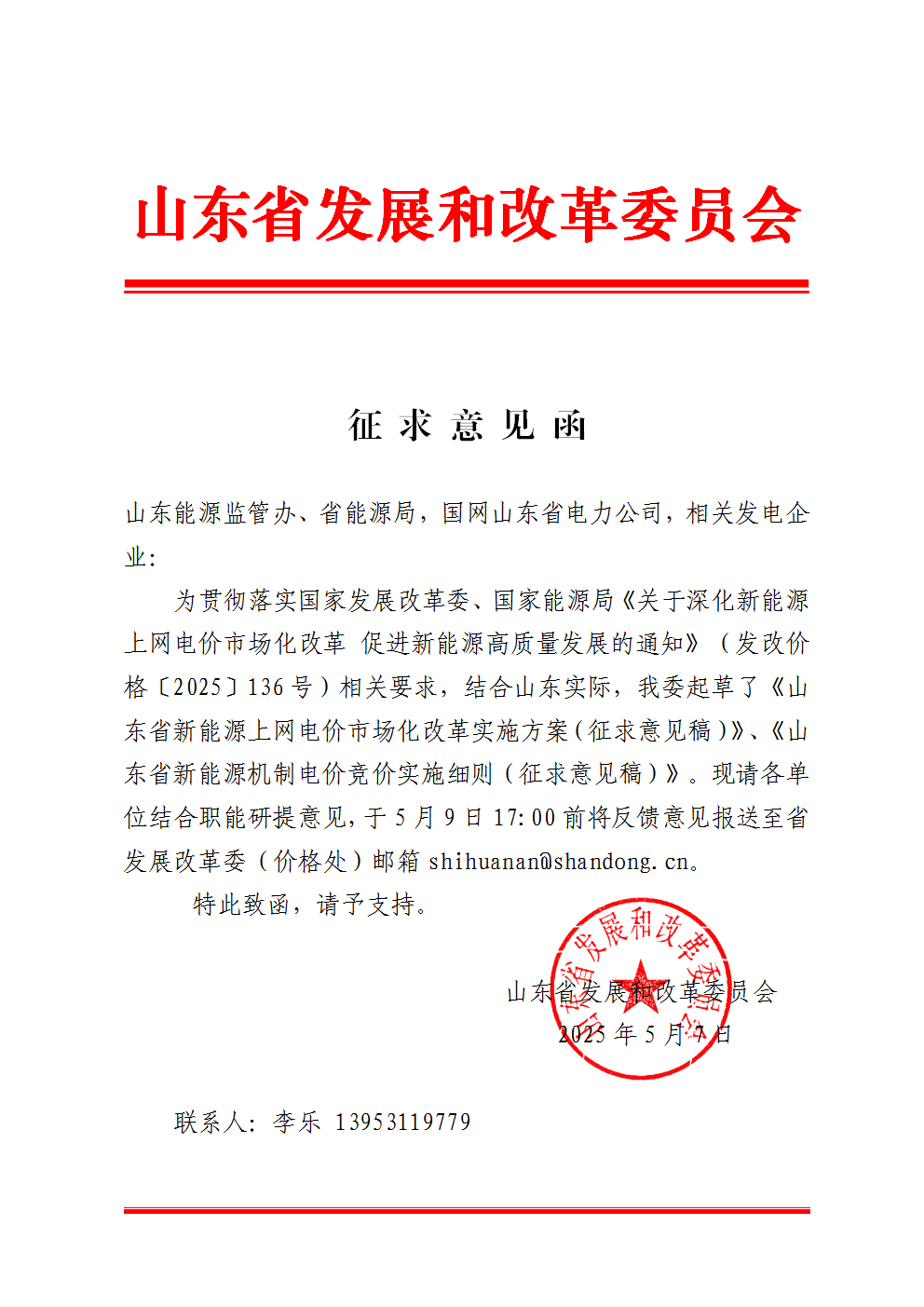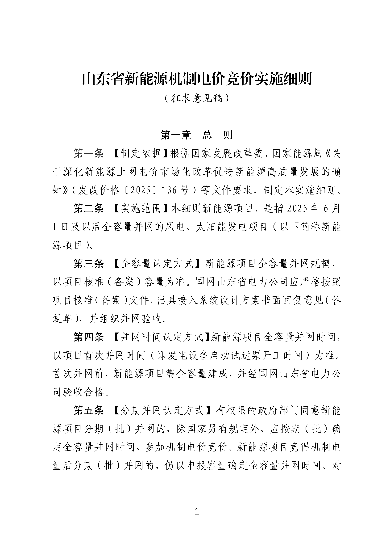 中國(guó)儲(chǔ)能網(wǎng)訊:近日,山東省發(fā)改委正式就《山東省新能源上網(wǎng)電價(jià)市場(chǎng)化改革實(shí)施方案(征求意見(jiàn)稿)》《新能源機(jī)制電價(jià)競(jìng)價(jià)實(shí)施細(xì)則(征求意見(jiàn)稿)》面向能源監(jiān)管機(jī)構(gòu)、電網(wǎng)企業(yè)及發(fā)電企業(yè)公開(kāi)征求意見(jiàn)。