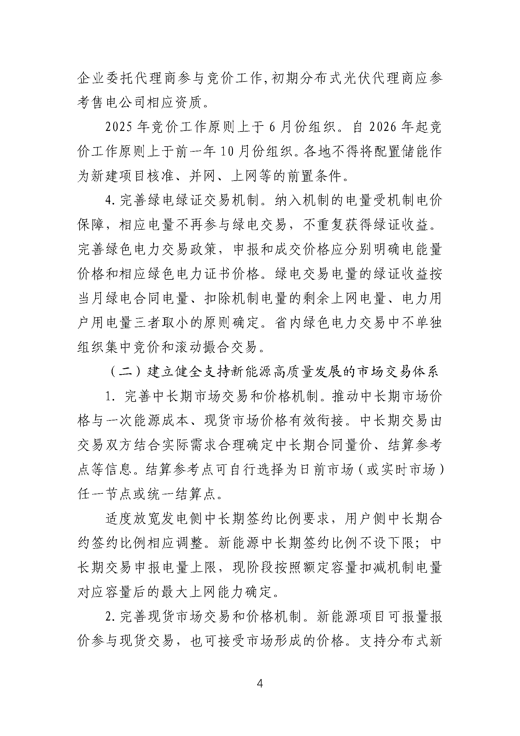 方案明確:2025年底前實(shí)現(xiàn)風(fēng)電、太陽(yáng)能等新能源全面參與電力市場(chǎng)交易。2025年競(jìng)價(jià)工作原則上于6月份組織。各地不得將配置儲(chǔ)能作為新建項(xiàng)目核準(zhǔn)、并網(wǎng)、上網(wǎng)等的前置條件。