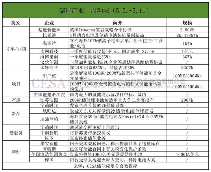 國際方面,華寶新能回應(yīng)美國關(guān)稅問題稱,已提前儲備了適量庫存,阿特斯則表示已簽訂儲能合同中有關(guān)稅變化保護(hù)條款;美國清潔能源協(xié)會宣布將投資1000億美元發(fā)展儲能電池;德國陽臺光儲系統(tǒng)起火原因查明,排除電池因素。