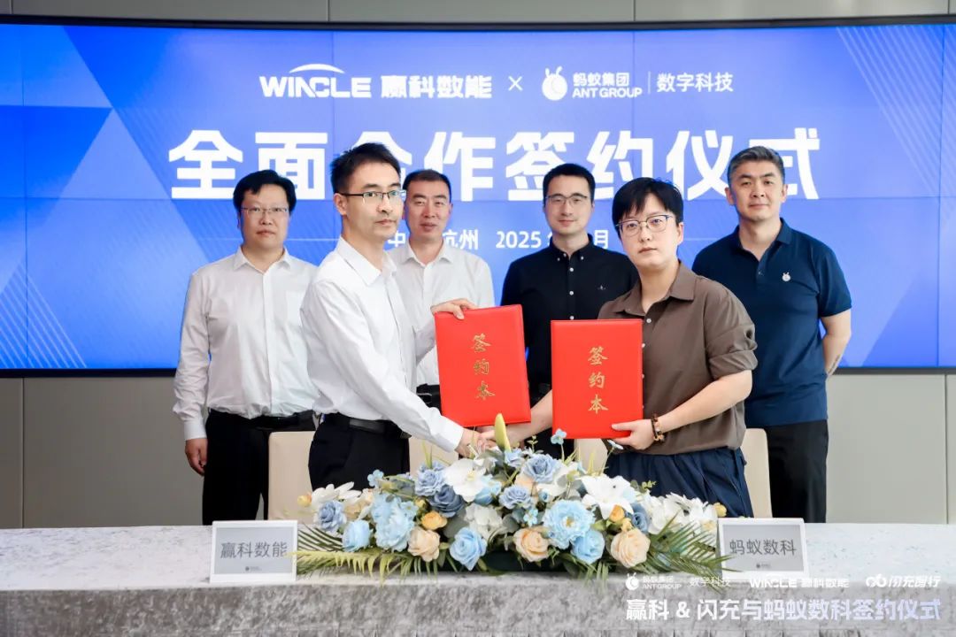 螞蟻數(shù)科中國(guó)區(qū)業(yè)務(wù)發(fā)展戰(zhàn)略行業(yè)線副總裁陳相斌、新能源行業(yè)總經(jīng)理&RWA資產(chǎn)中心負(fù)責(zé)人張琨與贏科數(shù)能總經(jīng)理王俊安、總經(jīng)理助理兼云行事業(yè)部總經(jīng)理王繼軍等共同見證。