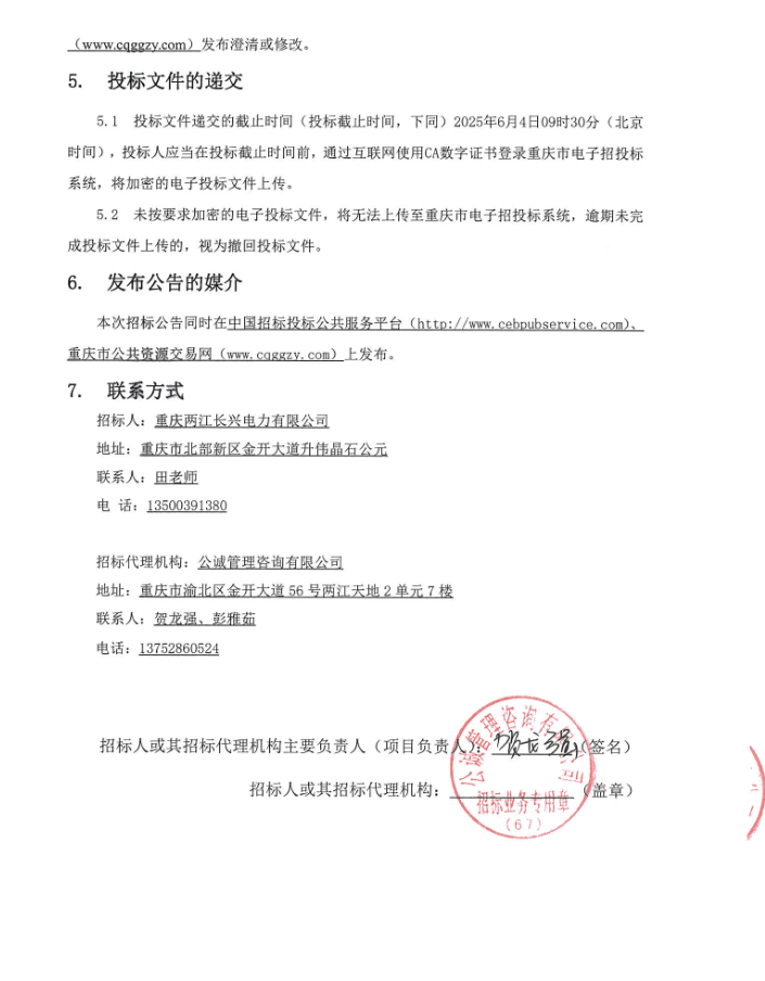 投標(biāo)文件遞交的截止時間(投標(biāo)截止時間,下同)為2025年6月4日09時30分(北京時間),投標(biāo)人應(yīng)當(dāng)在投標(biāo)截止時間前,通過互聯(lián)網(wǎng)使用CA數(shù)字證書登錄重慶市電子招投標(biāo)系統(tǒng),將加密的電子投標(biāo)文件上傳。未按要求加密的電子投標(biāo)文件,將無法上傳至重慶市電子招投標(biāo)系統(tǒng),逾期未完成投標(biāo)文件上傳的,視為撤回投標(biāo)文件。