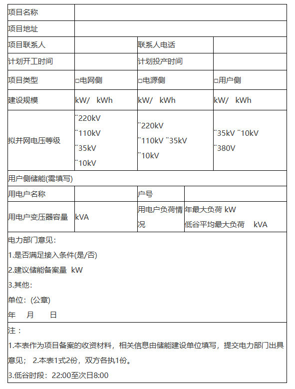 溫嶺市新型儲能項目電網(wǎng)接入咨詢意見表