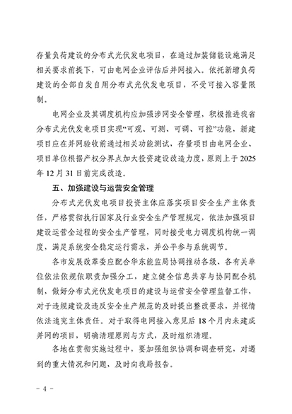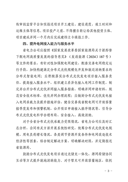 文件提出,在負荷方面,鼓勵分布式光伏發(fā)電項目通過光儲充一體化、源網(wǎng)荷儲協(xié)同互動等方式提升就地消納能力。對于暫無可開放容量地區(qū),依托存量負荷建設的分布式光伏發(fā)電項目,在通過加裝儲能設施滿足相關要求前提下,可由電網(wǎng)企業(yè)評估后并網(wǎng)接入。依托新增負荷建設的全部自發(fā)自用分布式光伏發(fā)電項目,不受可接入容量限制。