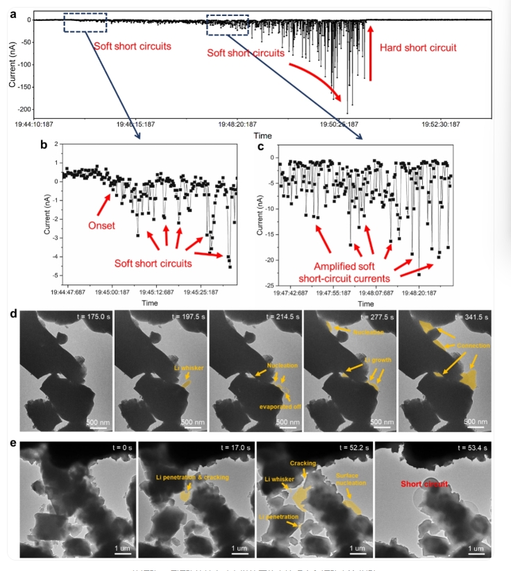 △軟短路-硬短路的轉(zhuǎn)變動力學(xué)的原位電鏡觀察和短路電流監(jiān)測