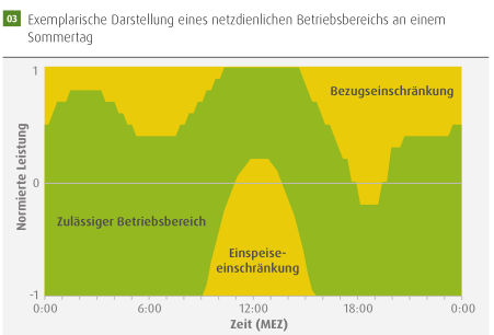 相較于電網(wǎng)中性標(biāo)準(zhǔn),電網(wǎng)友好型儲(chǔ)能在運(yùn)營(yíng)中的限制條件顯著更高(參見(jiàn)圖3示例)。為設(shè)置必要激勵(lì)并保障運(yùn)營(yíng)商經(jīng)濟(jì)可行性,運(yùn)營(yíng)商將獲得服務(wù)報(bào)酬。立法機(jī)構(gòu)通過(guò)《能源經(jīng)濟(jì)法》第11a條開(kāi)放了儲(chǔ)能設(shè)施招標(biāo)機(jī)制,允許將相關(guān)成本納入監(jiān)管認(rèn)可范圍。其前提是:儲(chǔ)能設(shè)施對(duì)于電網(wǎng)運(yùn)營(yíng)商高效履行"運(yùn)營(yíng)安全、可靠且高效能供電網(wǎng)絡(luò)"的法定義務(wù)具有必要性。