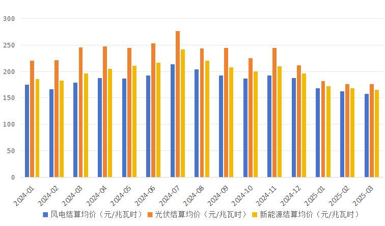 圖1:2024年1月-2025年3月市場(chǎng)新能源結(jié)算價(jià)格情況
