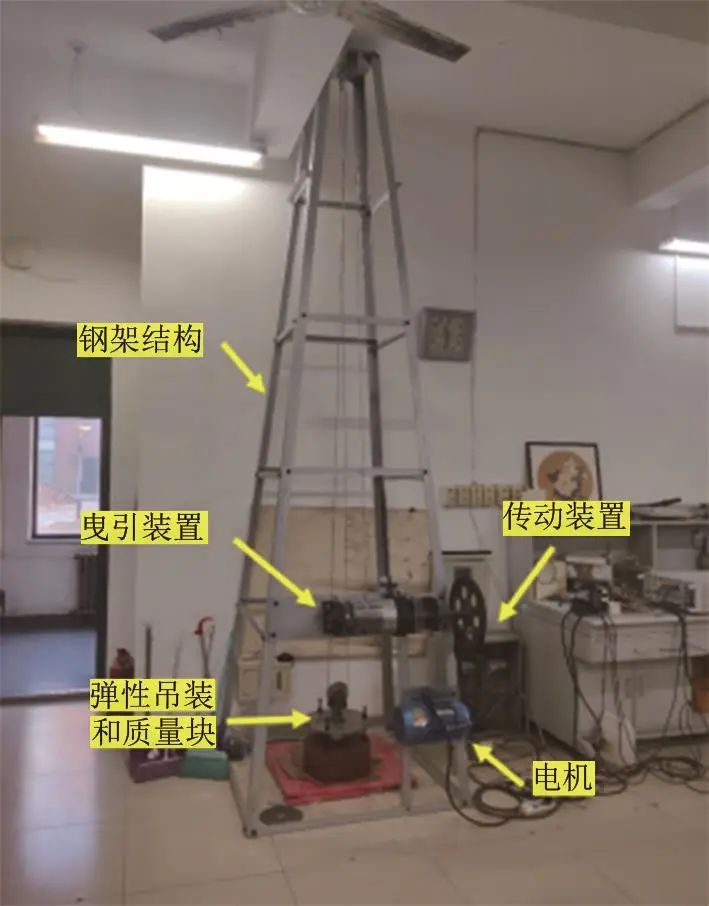 前述計算方法以及算例結(jié)果需要通過實驗驗證。根據(jù)圖1所示結(jié)構(gòu)搭建的垂直式重力儲能系統(tǒng)樣機如圖3所示。