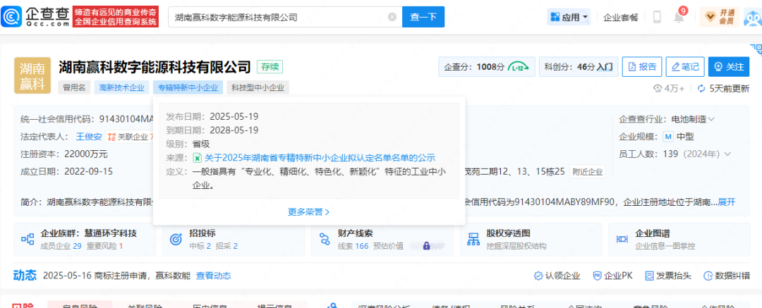 中國(guó)儲(chǔ)能網(wǎng)訊:近日,湖南省工業(yè)和信息化廳正式公布2025年度湖南省“專精特新”中小企業(yè)認(rèn)定名單,湖南贏科數(shù)字能源科技有限公司(以下簡(jiǎn)稱“贏科數(shù)能”)憑借在能源數(shù)字化領(lǐng)域的專業(yè)化技術(shù)實(shí)力、精細(xì)化運(yùn)營(yíng)能力、特色化產(chǎn)品布局及創(chuàng)新化發(fā)展成果,成功通過(guò)認(rèn)定。這一榮譽(yù)標(biāo)志著公司在核心技術(shù)攻關(guān)、市場(chǎng)競(jìng)爭(zhēng)力及行業(yè)影響力方面再獲權(quán)威認(rèn)可。