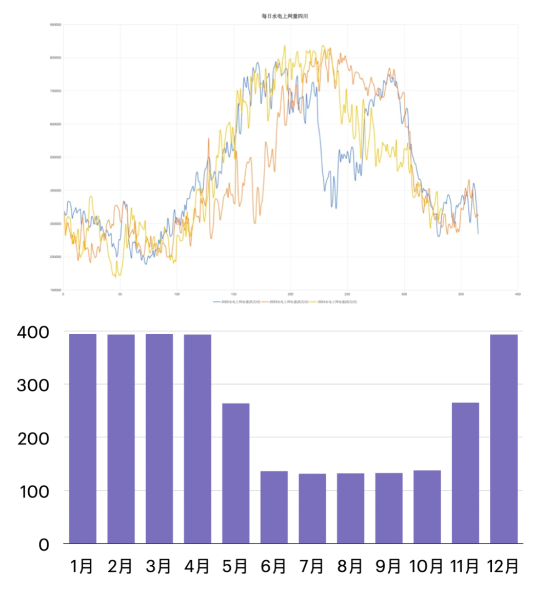 四川過(guò)去3年水電上網(wǎng)電量與2025年年度集中競(jìng)價(jià)分月價(jià)格