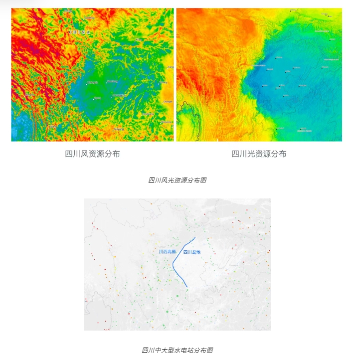 四川盆地常年高比例云覆蓋,也因?yàn)樘幱谂璧兀L(fēng)資源也差,而成都,重慶等大城市與負(fù)荷中心基本都位于四川盆地。但四川市場(chǎng)并不只有四川盆地,還有甘孜,阿壩,涼山構(gòu)成的川西高原,氣候與四川盆地迥異。大多數(shù)水能資源集中在川西高原(平原落差?。?,同時(shí),無(wú)論是風(fēng)資源還是光資源,川西高原都顯著優(yōu)于四川盆地,這不僅是風(fēng)光資源的斷面,同時(shí)也是經(jīng)濟(jì)發(fā)展的斷面和電力系統(tǒng)的斷面。