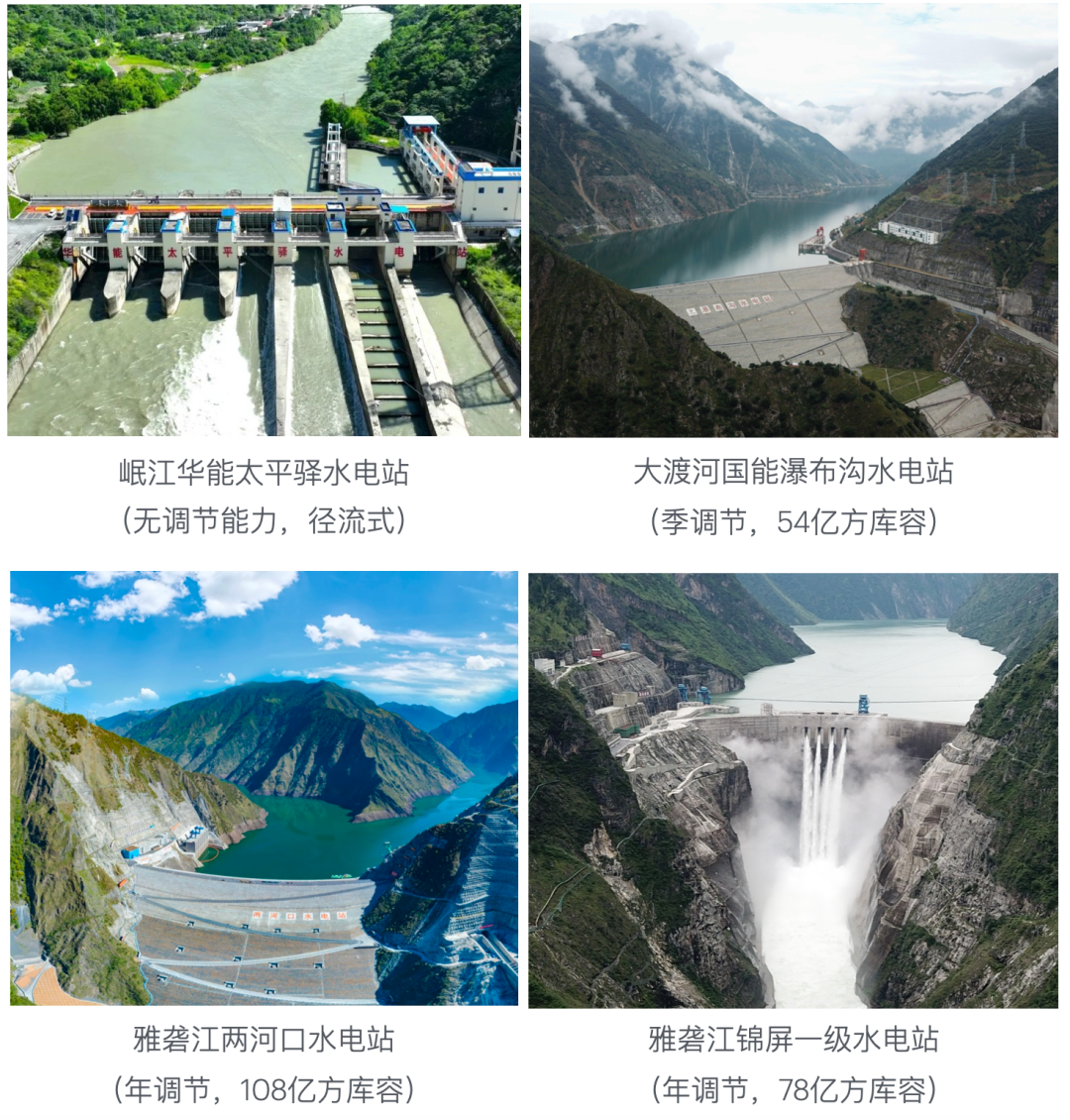 在這樣的資源稟賦下,四川擁有40余座300MW以上的大型水電站,以及3900余座中小型水電站,85%以上的水電站為無(wú)調(diào)節(jié)能力的徑流式電站。主要分布在金沙江,雅礱江,大渡河,岷江,嘉陵江流域。我們之前也就金沙江的水電進(jìn)行過(guò)研究。