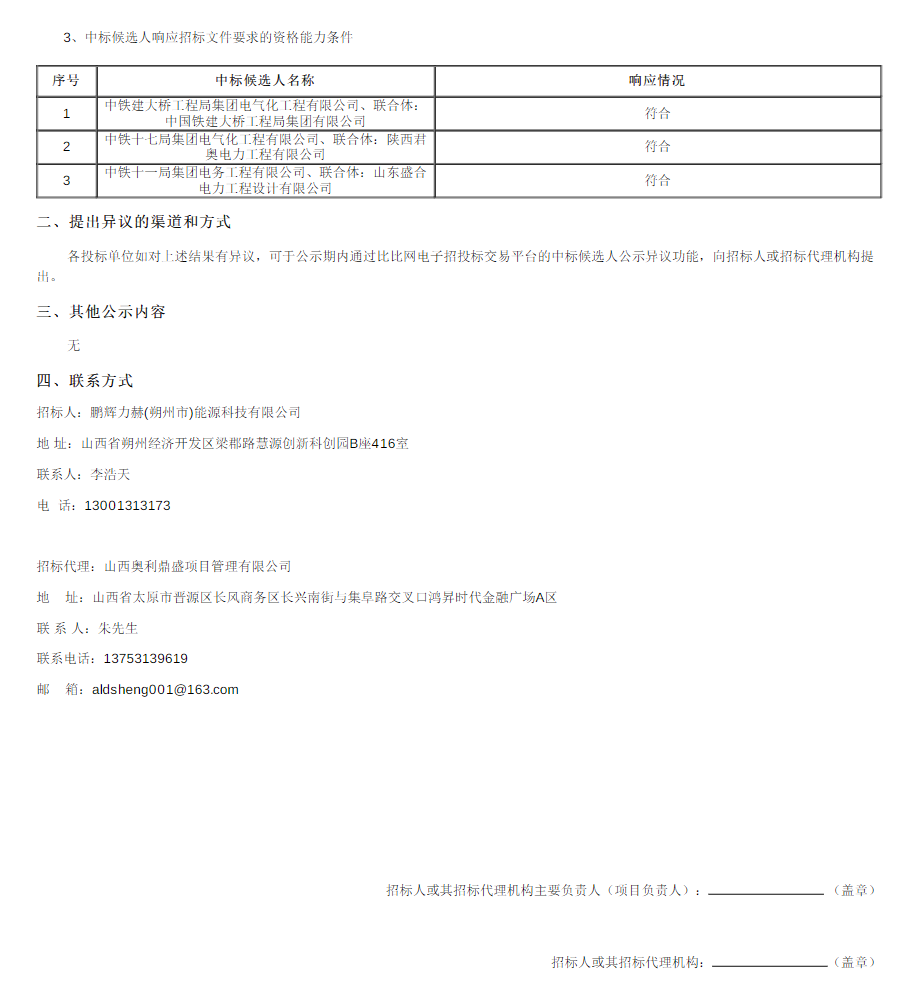 項目第二中標(biāo)候選人為中鐵十七局集團(tuán)電氣化工程有限公司、陜西君奧電力工程有限公司,費率報價98.70%。