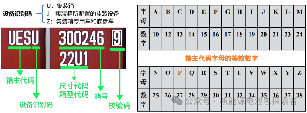 識別標(biāo)記主要由箱主代碼(UES)、設(shè)備識別碼(U/J/Z)、箱順序號(300246)、校驗(yàn)碼(9)等組成。