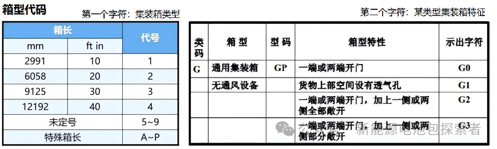箱型代碼由兩個字符組成,第一個字符表示集裝箱類型;第二字符表示某類型集裝箱的特征。