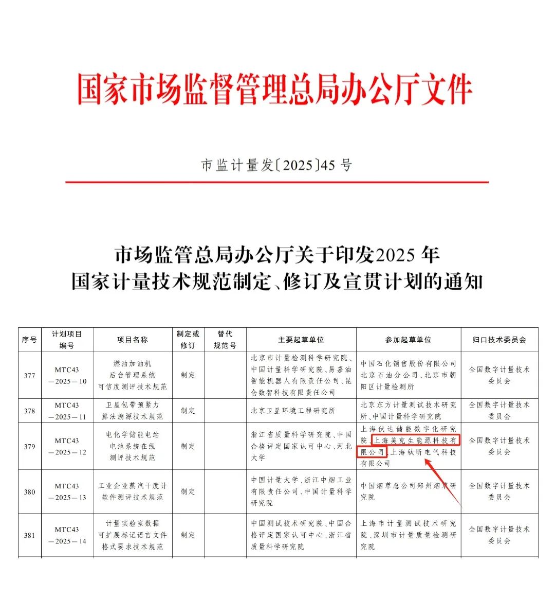 中國儲能網(wǎng)訊:近日,國家市場監(jiān)督管理總局辦公廳下發(fā)了關(guān)于《2025年國家計量技術(shù)規(guī)范制定、修訂及宣貫計劃》的通知。由美克生能源參與起草的《電化學(xué)儲能電站電池系統(tǒng)在線測評技術(shù)規(guī)范》(以下簡稱《規(guī)范》)成功立項。這不僅是國家層面對公司技術(shù)實力的高度認(rèn)可,也體現(xiàn)了美克生能源以創(chuàng)新重塑行業(yè)標(biāo)準(zhǔn)、賦能新型電力系統(tǒng)建設(shè)的企業(yè)擔(dān)當(dāng)。
