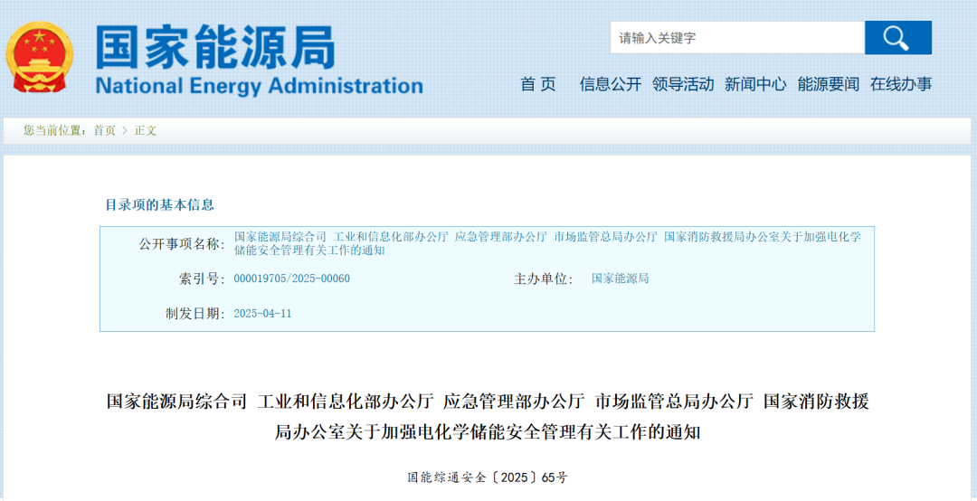中國儲能網(wǎng)訊:近日,國家能源局綜合司等部門聯(lián)合發(fā)布《關(guān)于加強電化學(xué)儲能安全管理有關(guān)工作的通知》,從提升電池系統(tǒng)本質(zhì)安全水平、健全標(biāo)準體系、強化全生命周期安全管理責(zé)任等六個方面,為儲能行業(yè)劃出安全“底線”,也為行業(yè)高質(zhì)量發(fā)展提供清晰方向。