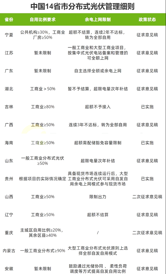 ①所在省份的分布式管理辦法細則是否頒布,工商業(yè)的話,自發(fā)自用比例是多少,以及對余電上網有哪些限制。