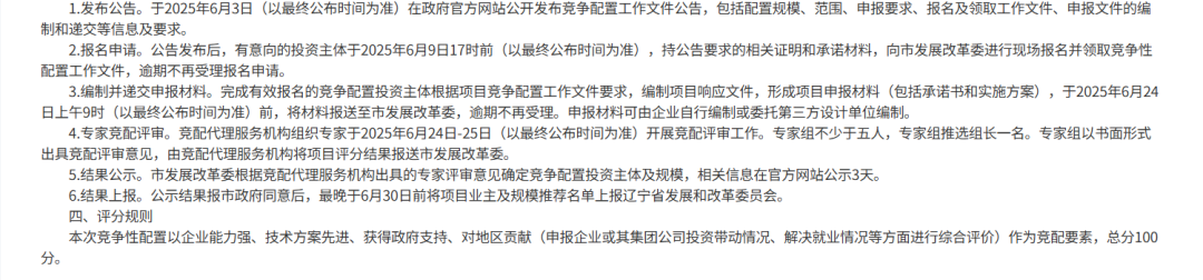 風電項目應(yīng)于2026年12月31日前啟動建設(shè),在滿足相關(guān)條件后,最晚于2030年并網(wǎng)。