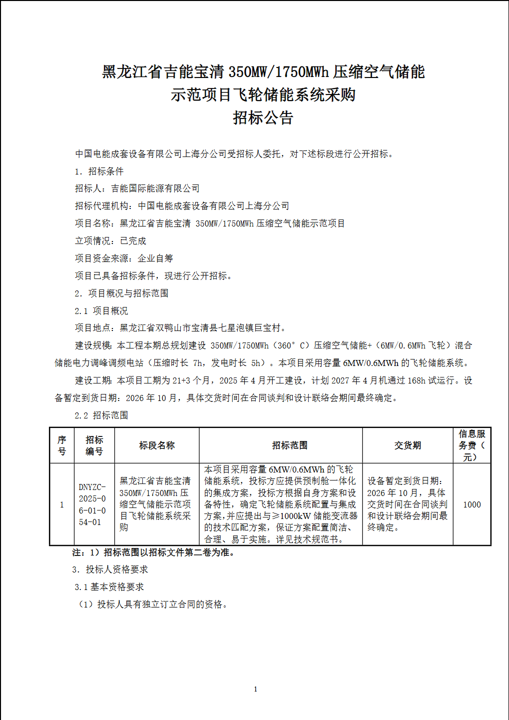 350MW/1750MWh!黑龍江寶清壓縮空氣儲(chǔ)能示范項(xiàng)目飛輪儲(chǔ)能系統(tǒng)采購招標(biāo)公告