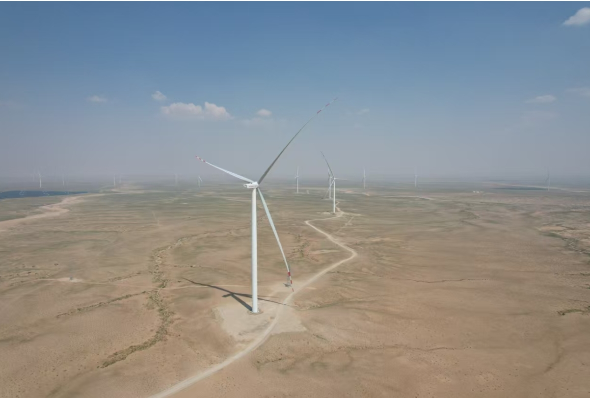 烏拉特后旗100萬千瓦風(fēng)儲(chǔ)基地保障性項(xiàng)目,位于內(nèi)蒙古自治區(qū)巴彥淖爾市烏拉特后旗境內(nèi)。項(xiàng)目建設(shè)內(nèi)容包括安裝100臺(tái)10MW風(fēng)機(jī)及其配套工程,同時(shí)建設(shè)2座220千伏升壓站及運(yùn)營管理中心等配套設(shè)施。此次成功并網(wǎng)的10MW風(fēng)機(jī),風(fēng)機(jī)輪轂高度125米,葉輪直徑達(dá)233米,掃風(fēng)面積約42000平方米,相當(dāng)于6個(gè)標(biāo)準(zhǔn)足球場(chǎng)。葉片采用高效翼型,采取防沙石設(shè)計(jì),運(yùn)用新材料“碳纖維”等增強(qiáng)風(fēng)機(jī)捕風(fēng)能力,在相同風(fēng)速下,可捕獲更多風(fēng)能,有效提升區(qū)域電力供應(yīng)水平。項(xiàng)目全容量并網(wǎng)投運(yùn)后,每年可輸送清潔電力約35億千瓦時(shí),可節(jié)約標(biāo)準(zhǔn)煤139萬噸,減少二氧化碳排放量347萬噸。對(duì)促進(jìn)黃河流域經(jīng)濟(jì)綠色轉(zhuǎn)型和可持續(xù)發(fā)展具有重要意義。
