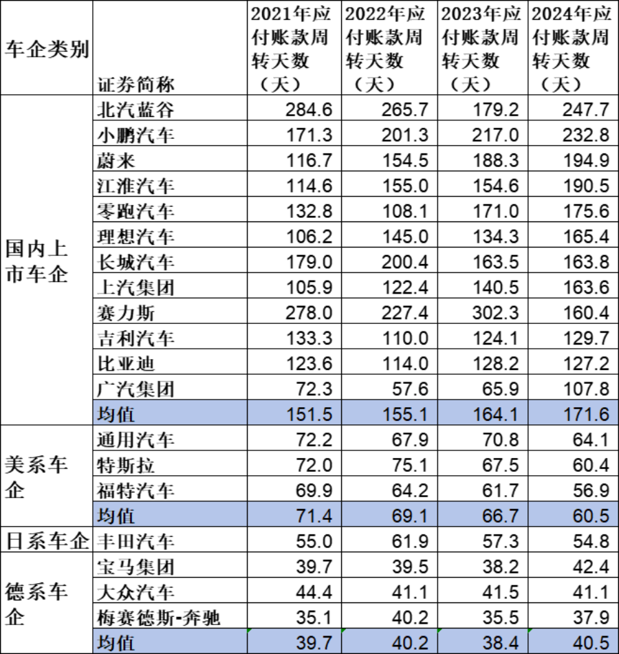 有分析認(rèn)為,特斯拉的應(yīng)付賬款管理效率與其全球供應(yīng)鏈布局密切相關(guān),其應(yīng)付賬款周轉(zhuǎn)天數(shù)從2022年的75.08天持續(xù)改善至2024年的60.36天,這反映出成熟企業(yè)在供應(yīng)鏈協(xié)同方面的系統(tǒng)化能力。相比之下,國內(nèi)車企在快速擴(kuò)張過程中更傾向于通過延長賬期緩解資金壓力。