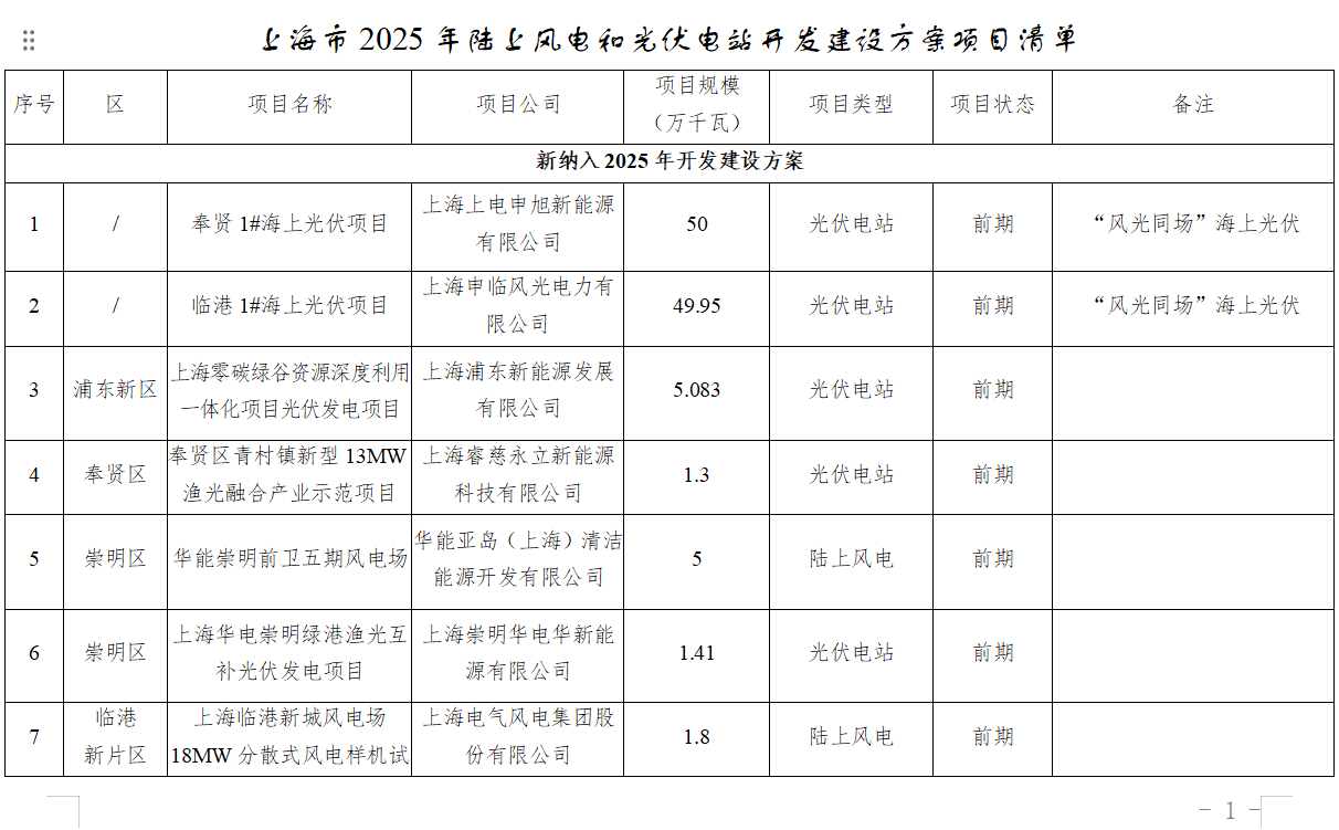 附件:上海市2025年陸上風(fēng)電和光伏電站開(kāi)發(fā)建設(shè)項(xiàng)目清單