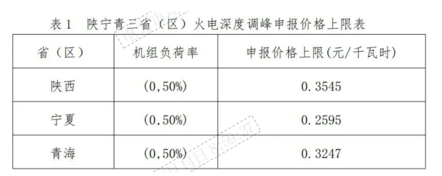按不高于當?shù)仄絻r新能源項目的上網(wǎng)電價原則調(diào)整調(diào)峰輔助服務市場價格上限。陜西、寧夏、青海輔助服務市場中調(diào)峰交易不再分檔,火電深度調(diào)峰申報價格上限調(diào)整如下: