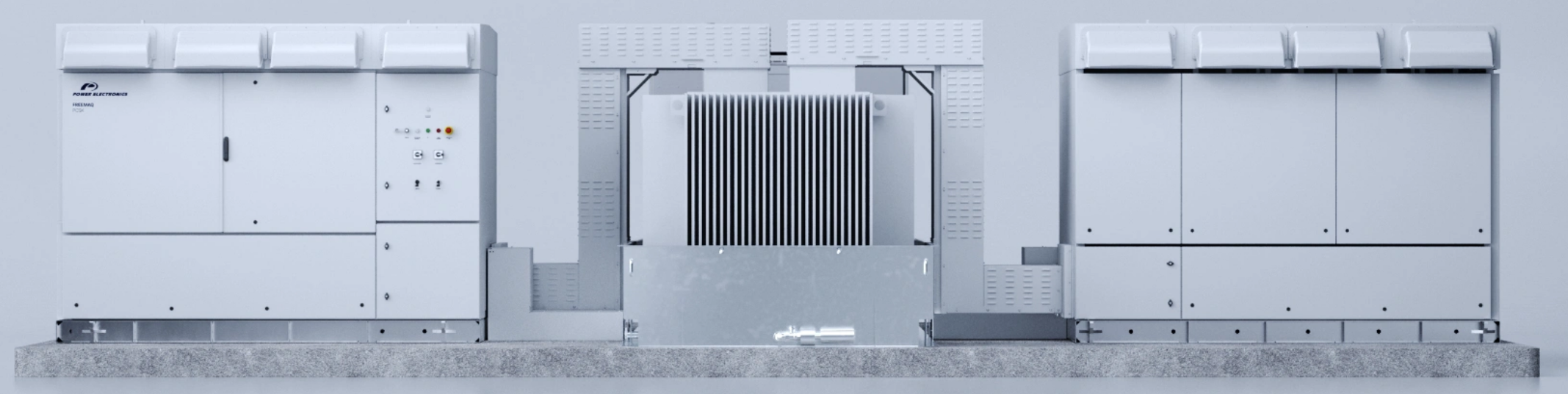 上圖儲能單元內(nèi)變流升壓一體機(jī)(NR)采用twin skid(PCS分別布置在一體機(jī)兩邊),采用這種形式的變流升壓一體機(jī),在“5一”或“啞鈴”布局中,直流電纜敷設(shè)更方便和節(jié)約。