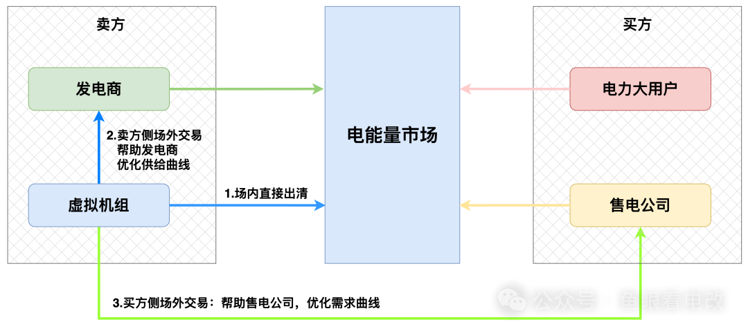 因?yàn)橐环矫嫣摂M電廠在場(chǎng)內(nèi)直接交易,很難有足夠的競(jìng)爭(zhēng)優(yōu)勢(shì),另一方面,隨著新能源入市、現(xiàn)貨市場(chǎng)連續(xù)運(yùn)行等政策,對(duì)新能源發(fā)電,售電公司來說,交易的不可預(yù)測(cè)性增加了。
