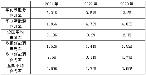 表3:2021—2023年華潤新能源和華電新能源棄風棄光率