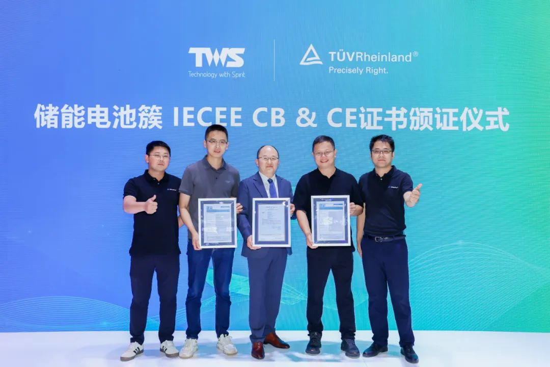 中國儲能網(wǎng)訊:近日,安徽明美新能源有限公司(以下簡稱“安徽明美新能”)的PowerCore液冷集裝箱儲能系統(tǒng)順利通過德國萊茵TüV大中華區(qū)(以下簡稱“TüV萊茵”)的歐盟IEC62619、IEC63056及CE LVD的審核。德國萊茵TüV大中華區(qū)電力電子產(chǎn)品服務(wù)總經(jīng)理董斌先生為安徽明美新能銷售總監(jiān)強林先生、工商業(yè)渠道銷售總監(jiān)姚程先生頒發(fā)了證書。
