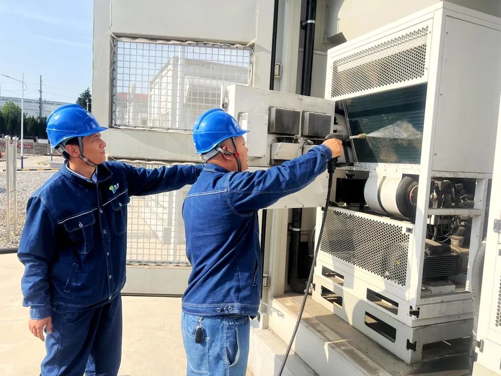 他們嚴(yán)格貫徹水發(fā)能源集團(tuán)及地調(diào)工作部署,系統(tǒng)開展電池艙液冷系統(tǒng)專項(xiàng)維護(hù):通過深度清潔散熱片、精準(zhǔn)補(bǔ)充冷卻液等標(biāo)準(zhǔn)化作業(yè),顯著提升系統(tǒng)冷卻效能;同步完成PCS艙散熱通風(fēng)口濾網(wǎng)除塵處理,有效規(guī)避粉塵堆積導(dǎo)致的散熱效率衰減。
