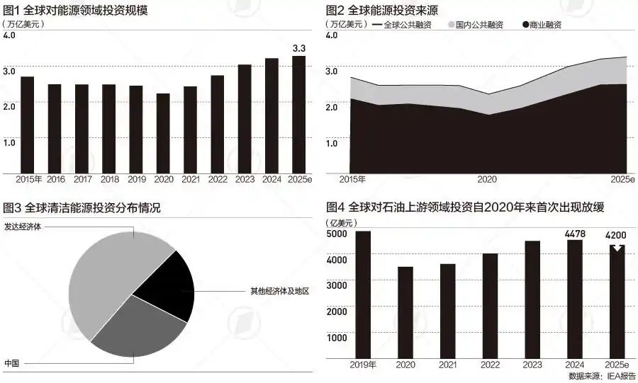 近日,國際能源署(IEA)發(fā)布《世界能源投資報告2025》(下稱“報告”)。報告顯示,在全球地緣政治緊張局面加劇且經(jīng)濟不確定性增強的背景下,2025年,全球能源領(lǐng)域的投資規(guī)模仍有望創(chuàng)歷史新高,總投資規(guī)模將達3.3萬億美元,較2024年增長約2%。其中,以可再生能源、核能、風(fēng)能、電氣化等為代表的清潔能源技術(shù)的引資規(guī)模有望達到創(chuàng)紀錄的2.2萬億美元,幾乎是傳統(tǒng)化石燃料(1.1萬億美元)所吸引投資規(guī)模的2倍。
