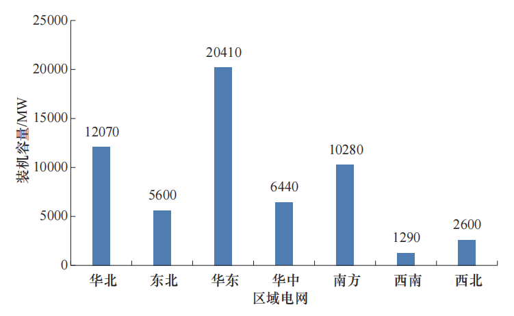 截至2024年底,我國抽水蓄能電站投產(chǎn)總裝機(jī)容量達(dá)到58690MW(見圖4)。華東區(qū)域最大,華北、南方區(qū)域次之。