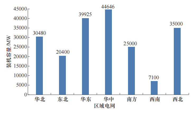 圖4 全國在運(yùn)抽水蓄能裝機(jī)容量分布