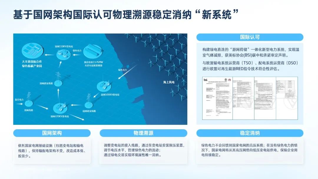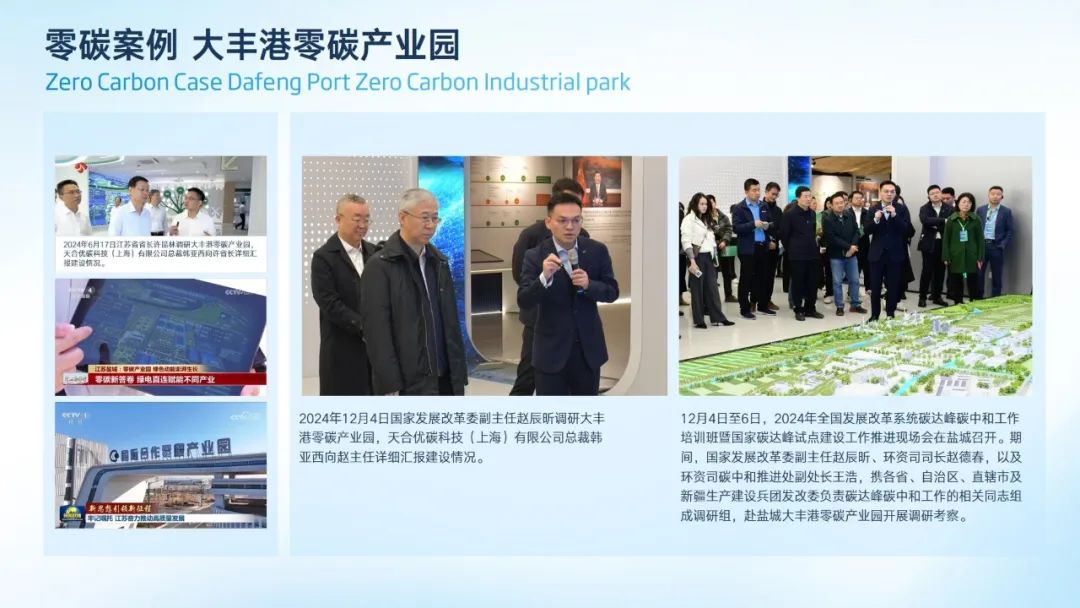 天合光能始終將零碳園區(qū)建設(shè)視為推動能源轉(zhuǎn)型與產(chǎn)業(yè)升級的核心抓手。公司認為,零碳園區(qū)不僅是響應(yīng)國家“雙碳”戰(zhàn)略的關(guān)鍵載體,更是企業(yè)提升國際競爭力、應(yīng)對綠色貿(mào)易壁壘的重要途徑。依托旗下全資子公司——天合優(yōu)碳科技(上海)有限公司的專業(yè)能力,天合光能打造了“綠電驅(qū)動+數(shù)智賦能+生態(tài)共贏”三位一體的零碳園區(qū)解決方案。通過構(gòu)建智慧微電網(wǎng)系統(tǒng)提升新能源就地消納能力,搭建能碳管理平臺實現(xiàn)碳排放實時監(jiān)測與優(yōu)化,并創(chuàng)新綠電交易機制,形成閉環(huán)降碳生態(tài)。大豐港零碳產(chǎn)業(yè)園項目是天合光能解決方案的典范實踐:該項目通過物理可溯源的綠電專線、智慧能碳管理平臺及國際標準認證體系,實現(xiàn)了園區(qū)綠電高比例覆蓋與碳排放精準管控。
