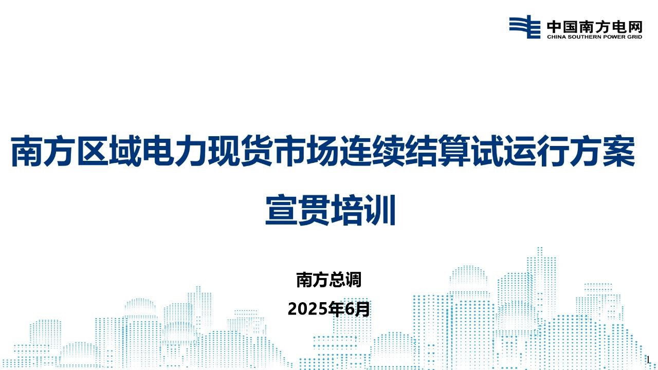 南方區(qū)域電力現(xiàn)貨市場(chǎng)連續(xù)結(jié)算試運(yùn)行實(shí)施方案宣貫培訓(xùn)
