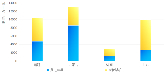 圖1 新、蒙、湘、魯風(fēng)光裝機(jī)對(duì)比(截至2024年底)