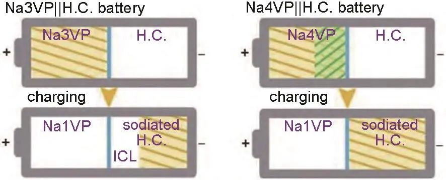 在此基礎上,Zhang等提出將商業(yè)檸檬酸鈉作為自犧牲正極添加劑,結構態(tài)硬碳CHC//Na3V2PO42F3/r GO全電池的初始容量提升22 mAh/g,能量密度提升了29 Wh/kg,該方法對環(huán)境友好,成本低與高效率的優(yōu)點在商業(yè)化應用推廣中具有重要前景。