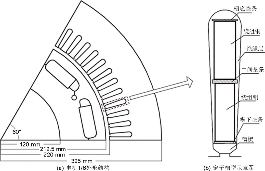 圖1 電機(jī)1/6外形結(jié)構(gòu)和定子槽型示意圖