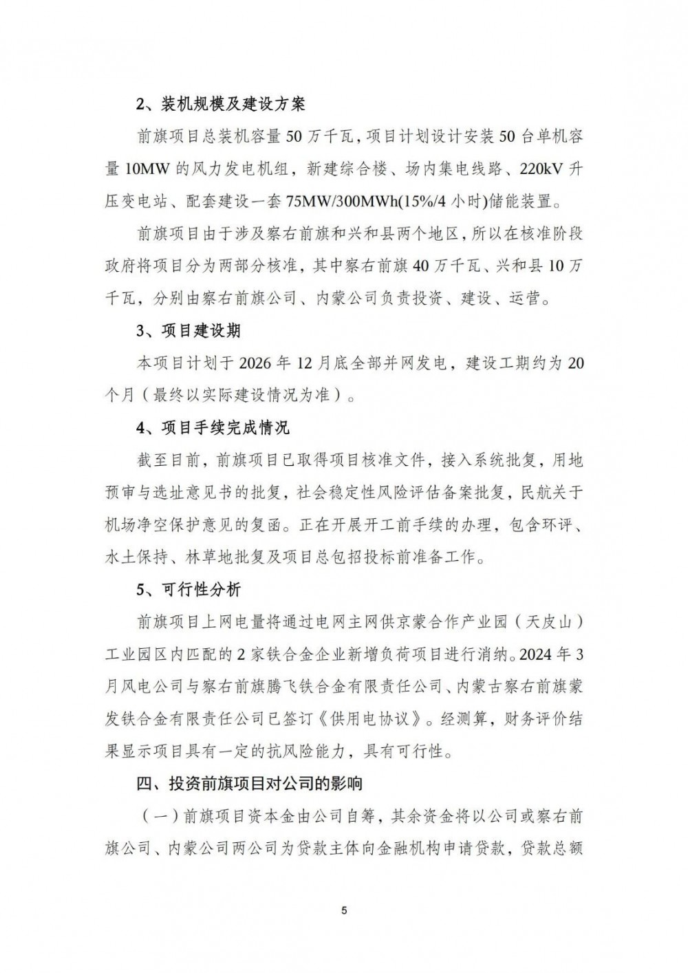 前旗項目由于涉及察右前旗和興和縣兩個地區(qū),所以在核準階段政府將項目分為兩部分核準,其中察右前旗40萬千瓦、興和縣10萬千瓦,分別由察右前旗公司、內(nèi)蒙公司負責投資、建設、運營。